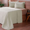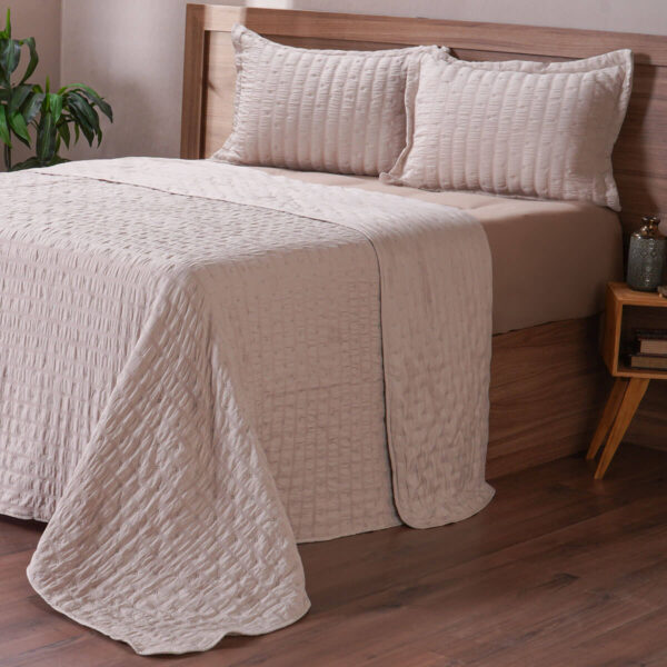 Seu tecido possui toque macio e agradável, garantindo conforto tanto para as noites de descanso quanto para a decoração do ambiente. As cores neutras e o acabamento refinado permitem fácil combinação com diferentes estilos de móveis e acessórios.