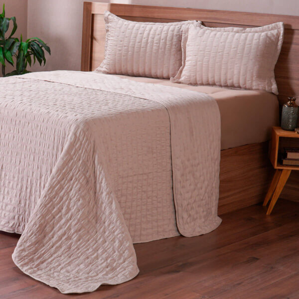 O Kit Colcha Santorini é a escolha ideal para quem busca unir elegância, aconchego e praticidade no dia a dia. Com design sofisticado e textura delicada, ele transforma o quarto em um ambiente moderno e acolhedor.