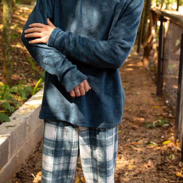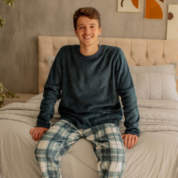 O Pijama de Plush Xadrez é ideal para quem busca conforto, praticidade e estilo nos dias mais frios. Confeccionado em plush 100% poliéster (Premium Fleece), oferece toque extremamente macio, excelente aquecimento e sensação aconchegante para o inverno.