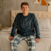 A blusa lisa de manga longa possui modelagem confortável e acabamento suave, enquanto a calça traz estampa xadrez clássica, criando um visual moderno, elegante e perfeito para relaxar com muito conforto.