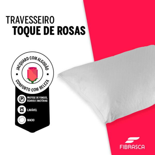 O Travesseiro Toque de Rosas Plumax Fibrasca foi desenvolvido para proporcionar máximo conforto, maciez e praticidade no momento do sono. Seu enchimento em fibra siliconada em formato de pérolas permite que o travesseiro seja integralmente lavável em máquina, retornando ao formato original após a lavagem, sem deformar ou embolar — um grande diferencial em relação às fibras em manta tradicionais.