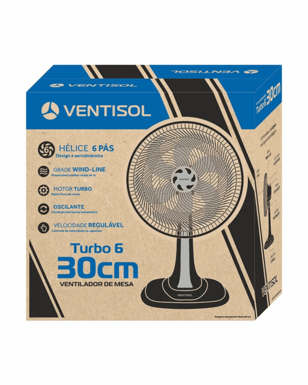 O Ventilador de Mesa Ventisol Turbo 6 30cm é a escolha ideal para quem busca um ambiente mais fresco, agradável e silencioso. Equipado com motor Turbo e hélice de 6 pás com nova aerodinâmica, ele proporciona maior vazão de ar com excelente desempenho, mantendo o conforto térmico para você e sua família.