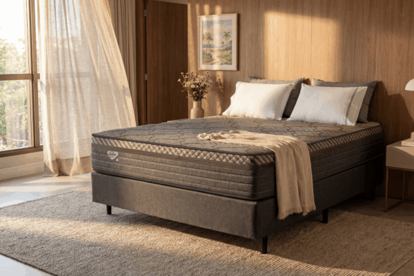 🔹 Altura de 28 cm e suporte para até 150 kg – ideal para casal.