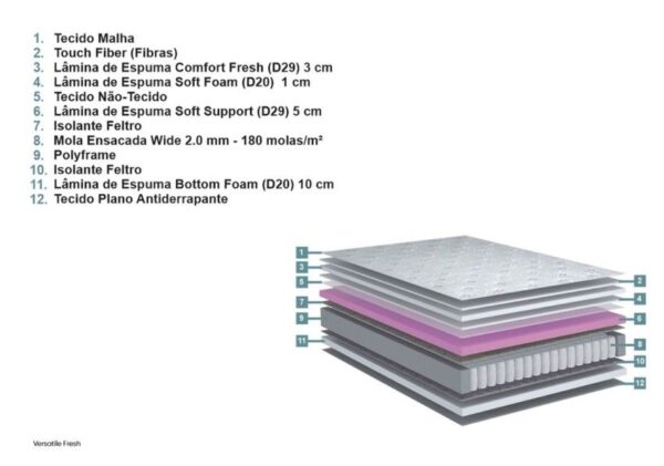 O Versatille Fresh Ecoflex foi criado para quem busca um colchão completo: resistente, elegante e com conforto excepcional. Com 36 cm de altura, entrega firmeza na medida certa, ideal para quem valoriza noites de sono tranquilas e restauradoras.