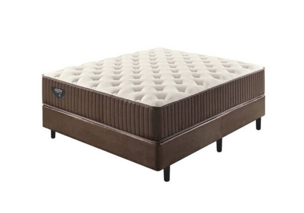 No seu interior, o robusto sistema de molas Superlastic entrega firmeza e absorção de impactos, ideal para casais com biotipos diferentes. O pillow top possui uma espuma resistente, fresca e de toque macio, que equilibra suporte firme com uma superfície agradável ao corpo.