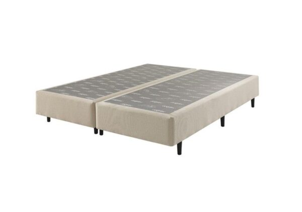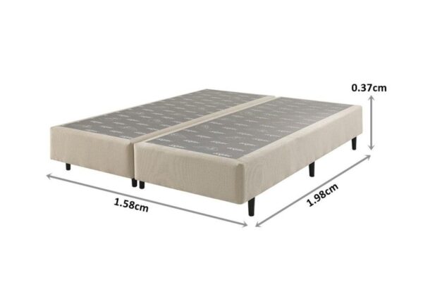 Somiê resistência na medida certa para o seu colchão. Somiê para formar o conjunto box. Acabamento lateral em tecido na cor champanhe liso, com 37 cm de altura. Tecido superior com antiderrapante que evita que o colchão deslize sobre o somiê. Tecido inferior em TNT de alta gramatura. Pés fixos de madeira, para maior resistência e durabilidade com 12 cm de altura. Somiê de madeira com acabamento arredondado. Chapa com 4 mm de espessura