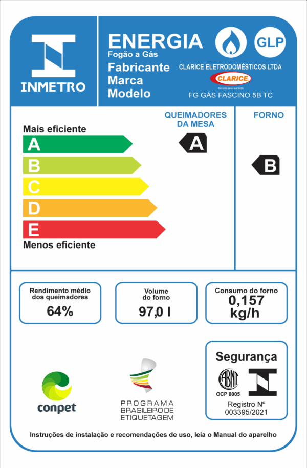 O grande destaque do modelo é o forno de 97 litros, que proporciona amplo espaço interno para assar grandes receitas. Ele conta com amplo visor, sistema Easy Clean (limpa fácil), grade fixa com opção de altura e válvula de segurança, oferecendo praticidade e segurança no uso. Com potência de 3,3kW e temperatura ajustável de 180ºC a 270ºC, garante ótimo desempenho para assados, gratinados e preparos variados.