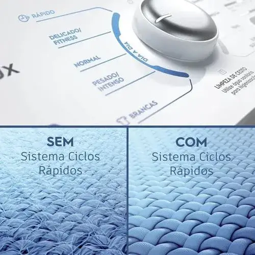 O sistema Ciclos Rápidos ajusta automaticamente o tempo de lavagem, tornando os programas mais ágeis quando necessário, sem comprometer o desempenho, reduzindo o desgaste das roupas.