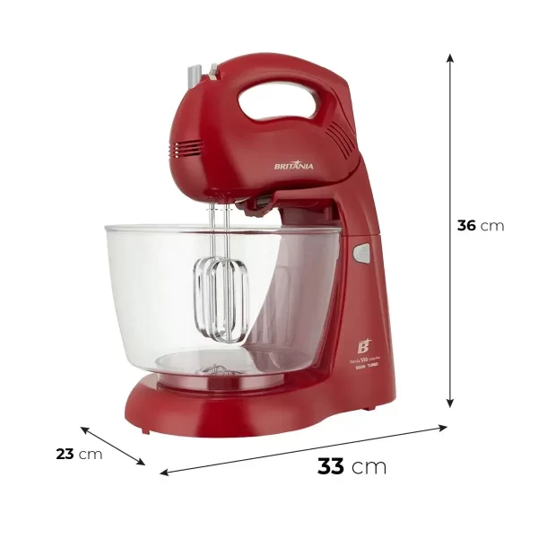 O modelo acompanha duas tigelas, oferecendo ainda mais praticidade na rotina: uma tigela plástica com capacidade de 3,1 litros e uma tigela cristal de 4,3 litros, que permite visualizar todo o processo de preparo. A batedeira conta com 1 par de batedores para massas leves, ideal para bolos, tortas, cremes e outras receitas.