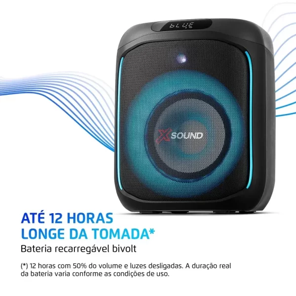 Sua bateria bivolt recarregável oferece até 12 horas de autonomia, permitindo levar a festa para qualquer lugar, sem se preocupar com tomadas. O display digital facilita o controle das funções e frequências, enquanto a equalização sonora garante o melhor desempenho para diferentes estilos musicais. Tudo isso com a qualidade e a confiabilidade da Mondial, que oferece 1 ano de garantia.