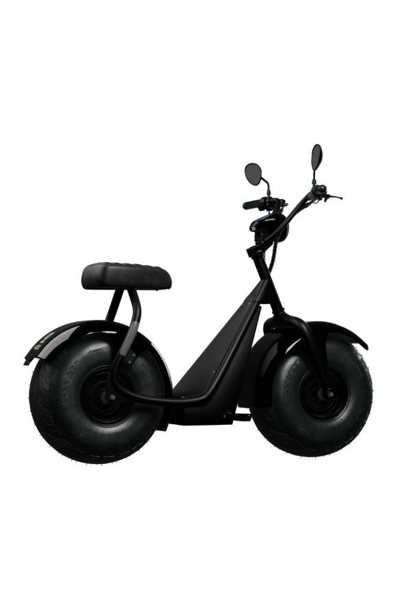 Seu design robusto com linhas contemporâneas transmite personalidade, enquanto os pneus largos garantem mais estabilidade e segurança em diferentes tipos de piso. A posição de pilotagem é confortável e ergonômica, ideal tanto para trajetos curtos quanto para passeios mais longos.