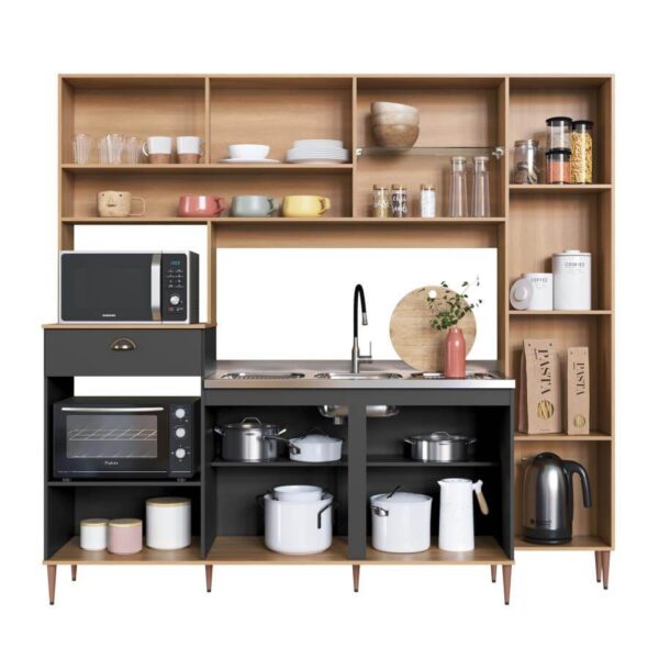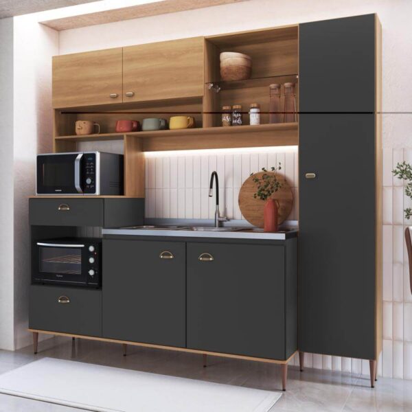 A Cozinha Compacta Karina foi desenvolvida para transformar sua cozinha em um ambiente mais funcional, organizado e moderno. Com excelente qualidade de acabamento, ela oferece ótimo aproveitamento de espaço, sendo ideal para cozinhas compactas sem abrir mão do estilo.