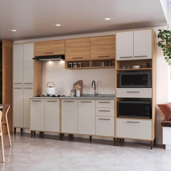 A Cozinha Modulada Jade, da Delmarco, foi desenvolvida para quem busca praticidade, organização e um visual atemporal. Seu design versátil combina facilmente com diferentes estilos de decoração, valorizando o ambiente e proporcionando ótimo aproveitamento de espaço.