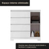Seu grande diferencial está nos puxadores recuados, que além de conferirem um visual mais sofisticado e minimalista, tornam o uso diário mais prático e seguro. Desenvolvida com materiais de alto padrão, a Cômoda Vega recebe acabamento em pintura UV texturizada, garantindo maior resistência, durabilidade e um toque elegante ao móvel.