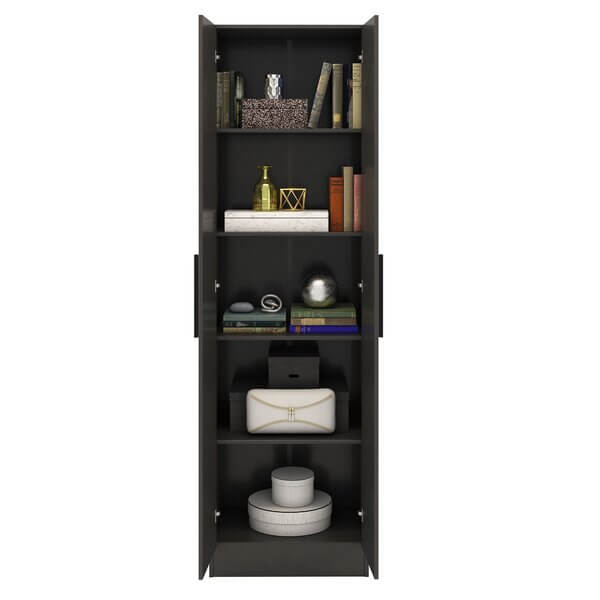 Sua estrutura em MDP de 12mm garante resistência para o uso diário, enquanto os puxadores em MDF agregam um acabamento moderno e elegante ao móvel. Internamente, conta com 4 prateleiras bem distribuídas, oferecendo espaço ideal para organizar produtos, utensílios, documentos ou objetos diversos de forma prática e acessível.