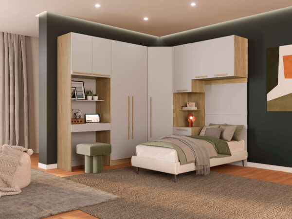 O Dormitório San Diego foi desenvolvido para quem busca elegância, organização e versatilidade em um único ambiente. Com design moderno e linhas sofisticadas, ele transforma o quarto em um espaço aconchegante e funcional, ideal para o dia a dia.
