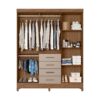 Conta com 4 gavetas equipadas com corrediças metálicas, garantindo abertura suave e maior durabilidade. O espaço interno é muito bem distribuído, com cabideiros e calceiro em alumínio, ideais para organizar roupas longas, camisas, calças e acessórios de forma prática e eficiente.