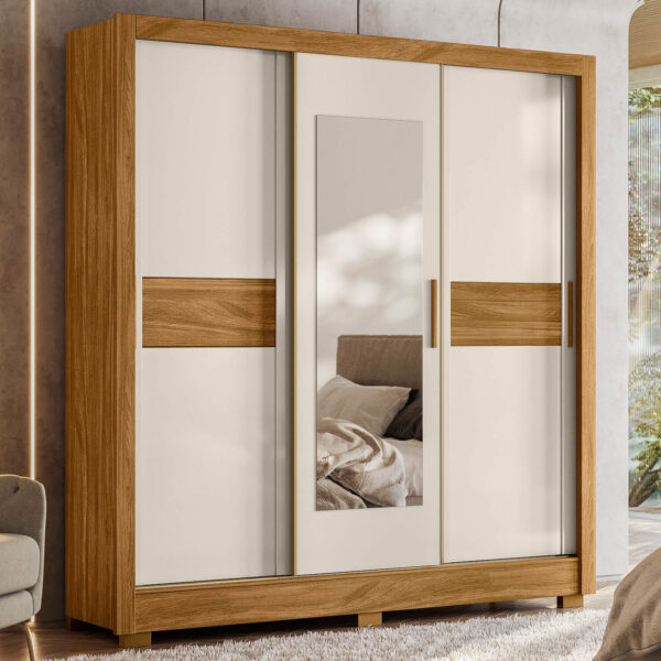 Com 3 portas deslizantes sobre trilho de alumínio, proporciona abertura suave e economia de espaço, sendo ideal para diversos tamanhos de quarto.