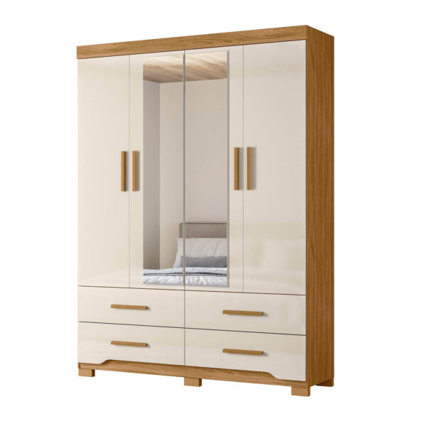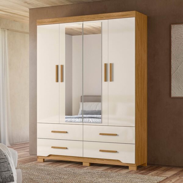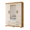 Conta com 4 gavetas com corrediças telescópicas, que proporcionam abertura suave e total, ideais para organizar roupas dobradas, acessórios e itens pessoais. O cabideiro em alumínio garante resistência e durabilidade para acomodar roupas longas e curtas com segurança.