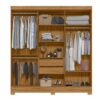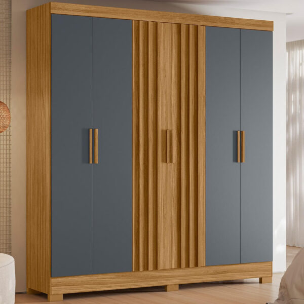 Suas portas com detalhes ripados trazem charme e personalidade ao móvel, destacando-se como um diferencial estético que acompanha as tendências atuais de decoração. Internamente, o Valença conta com prateleiras centrais, que facilitam a organização de roupas dobradas, caixas organizadoras e acessórios, otimizando cada espaço disponível.