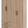 Guarda-roupa Caju com 4 portas, cabideiro em madeira revestida, gavetas com corrediças metálicas, puxadores e pés em ABS. Prático, funcional e ideal para organizar o quarto com eficiência.