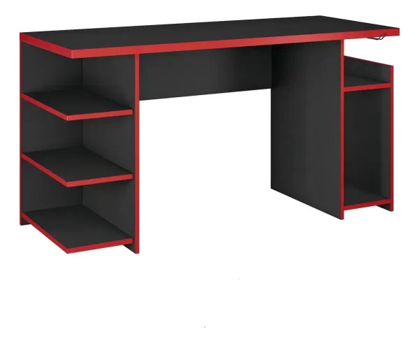 Seu design funcional inclui nicho exclusivo para gabinete, proporcionando melhor acomodação da CPU, com ventilação adequada e proteção. Além disso, possui 4 prateleiras espaçosas, perfeitas para organizar controles, jogos, caixas de som, livros ou acessórios, mantendo tudo sempre ao alcance das mãos.