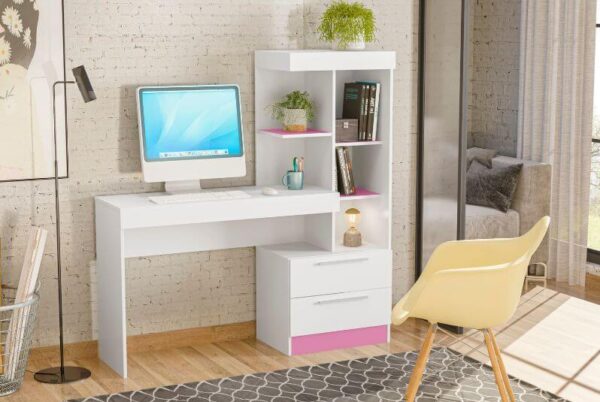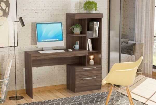 Produzida com estrutura de 15mm, oferece resistência e estabilidade para acomodar computador, materiais de trabalho e objetos decorativos com segurança.