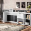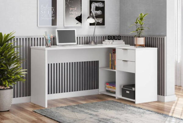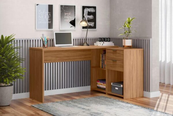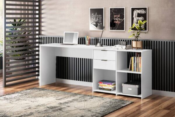 Seu tampo robusto de 25mm garante maior estabilidade e segurança no uso diário, oferecendo resistência para suportar computador, livros, materiais de escritório e demais equipamentos com total firmeza.