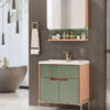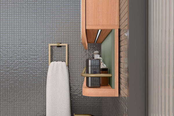 O aéreo conta com frente espelhada, prateleiras internas em MDF e iluminação em LED, trazendo mais praticidade e conforto para a rotina. Já o balcão oferece amplo espaço interno, ideal para organizar toalhas, produtos de higiene e acessórios do dia a dia.