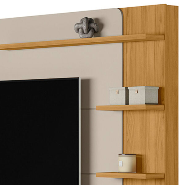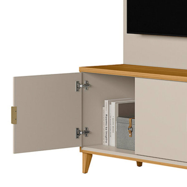 Seu design se destaca pelas portas com cantos arredondados, que trazem leveza visual e um toque contemporâneo ao ambiente. Os nichos decorativos são perfeitos para organizar aparelhos eletrônicos, objetos decorativos, livros ou itens do dia a dia, deixando tudo sempre à mão e bem distribuído.