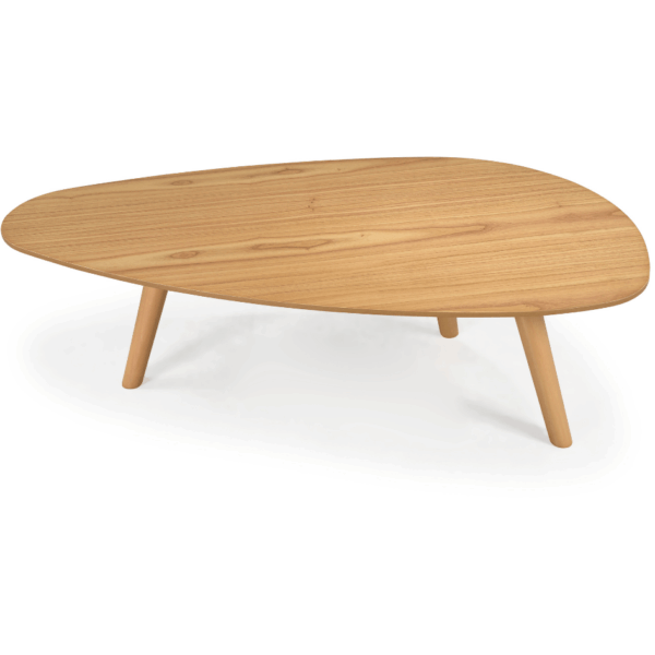 O grande destaque fica por conta da base em formato tripé, que além de garantir estabilidade, adiciona um toque contemporâneo e elegante ao conjunto. Produzidas em MDF com acabamento em lâmina de madeira, as mesas oferecem resistência e durabilidade para o dia a dia.
