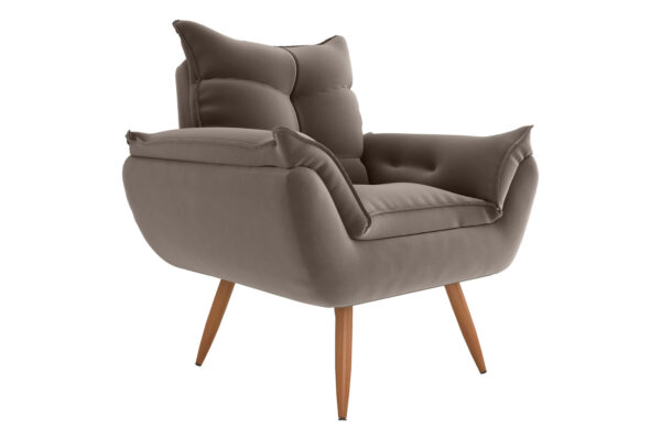 Os pés em madeira reforçam a resistência e agregam leveza ao visual, criando um contraste harmonioso com o estofado. A Poltrona Tóquio é perfeita para compor salas de estar, quartos, escritórios ou ambientes comerciais, adicionando personalidade e sofisticação à decoração.