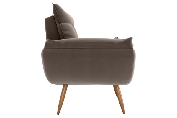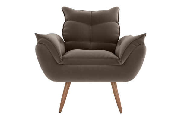 Seu encosto e assento são amplos e macios, proporcionando excelente acomodação e conforto no dia a dia. Os braços levemente inclinados e com detalhe em costura aparente trazem um charme especial ao modelo, deixando a peça ainda mais moderna e estilosa.