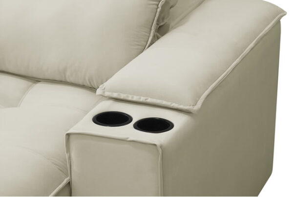 Os braços removíveis com porta-copos, confeccionados em espuma D-20, trazem funcionalidade e versatilidade, podendo ser utilizados conforme a necessidade do momento. O acabamento em TNT preto para forração interna e externa reforça o cuidado com os detalhes e o alto padrão de qualidade do produto. Para completar, os pés em madeira acrescentam estabilidade e elegância ao conjunto.