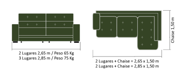 O assento fixo é composto por espuma D-26 combinada com molas espirais, oferecendo firmeza equilibrada e excelente acomodação do corpo. Já o encosto com almofadas soltas, preenchidas com fibras siliconadas, proporciona maciez, conforto e liberdade para ajustar a posição conforme sua preferência.