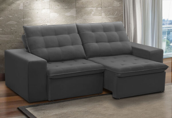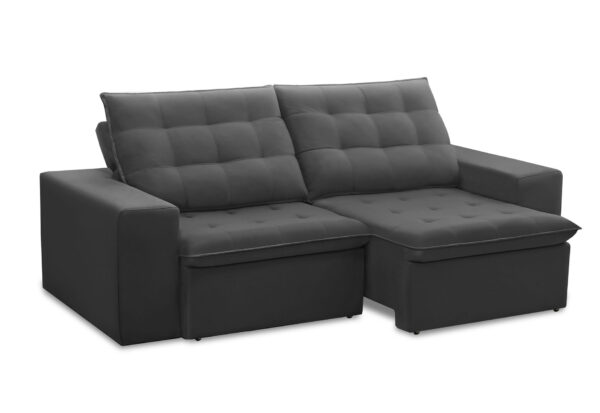 O assento retrátil, composto por espuma D-26, proporciona excelente acomodação e conforto na medida certa. O encosto reclinável, acionado por catraca metálica de 5 estágios e preenchido com 100% de fibra siliconada, permite diferentes posições para relaxar com total aconchego.