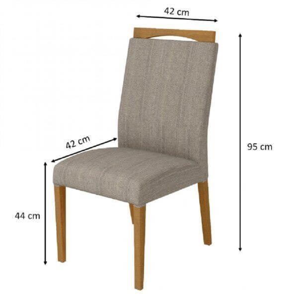 Sua estrutura é produzida em madeira maciça 100% eucalipto, garantindo alta resistência, estabilidade e longa vida útil. O assento e o encosto fixos proporcionam conforto no uso diário, contando com enchimento em espuma D-23 no assento e espuma no encosto, oferecendo uma experiência agradável durante as refeições e momentos de convivência.