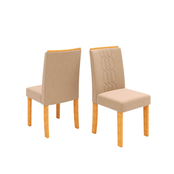 O assento e o encosto estofados contam com espumas de alta qualidade, garantindo conforto prolongado, enquanto os tecidos em cores atuais facilitam a combinação com diferentes estilos de decoração. Um dos grandes destaques do modelo é o bordado geométrico no encosto ergonômico, que adiciona sofisticação e um charme especial à peça.