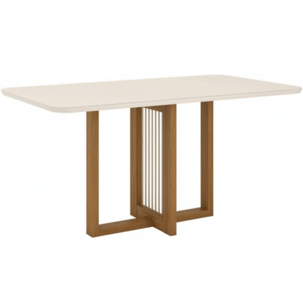 Seu tampo amplo de 160 cm proporciona espaço ideal para até 6 lugares, sendo perfeita para reunir a família no dia a dia ou em momentos especiais. A base com design diferenciado, com detalhes verticais, agrega charme e modernidade ao ambiente, além de garantir firmeza e estabilidade.