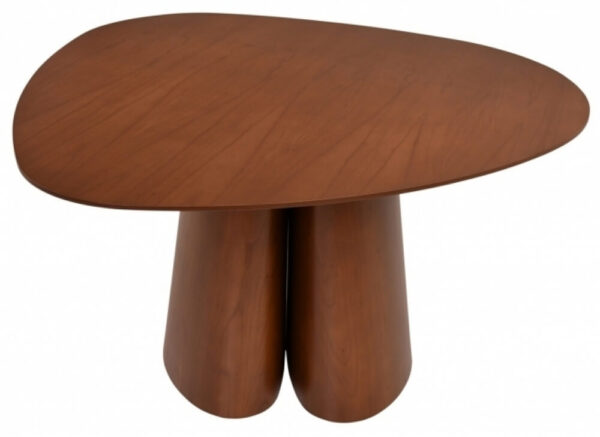 Produzida com tampo e base em MDF laminado na cor cinamomo, oferece excelente resistência e durabilidade, além de um acabamento refinado em verniz fosco que valoriza ainda mais o visual natural da madeira. Seu tampo de 25 mm garante robustez, enquanto a base com design exclusivo proporciona estabilidade e um toque contemporâneo ao ambiente.