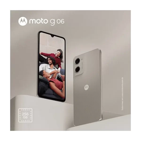 Na parte de câmeras, o Moto G06 conta com câmera traseira de 50MP com inteligência artificial, que melhora a qualidade das fotos, inclusive em ambientes com pouca luz. A câmera frontal de 8MP é ideal para selfies e chamadas de vídeo com ótima nitidez.